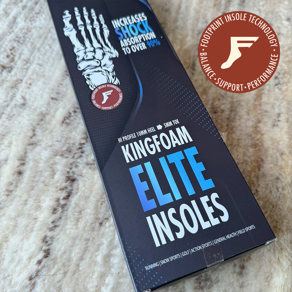 NASAにも採用されているKingfoam素材を使用。ASTM F1614の衝撃吸収試験では約91%のエネルギーを吸収。一般的な高性能インソール(約53%)を大きく上回るスペックです。